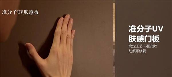 这个系列还有很多贴心设计。比如非对称门板设计,既能解决小户型门板占道问题提高空间利用率,也增加了趣味性。肤感UV门板搭配拉丝金属纹,触感细腻而且不留指纹,超薄金属层板轻盈灵巧,源自汽车拉手的隐藏式灵动拉手,于细节处拉升质感。